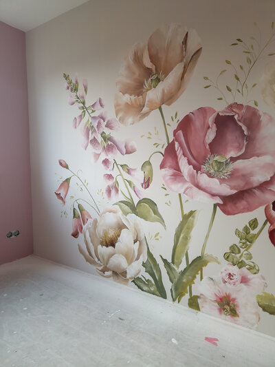 Arianne heeft voor mij een prachtige muurschildering gemaakt met grote bloemen. In één woord geweldig!!